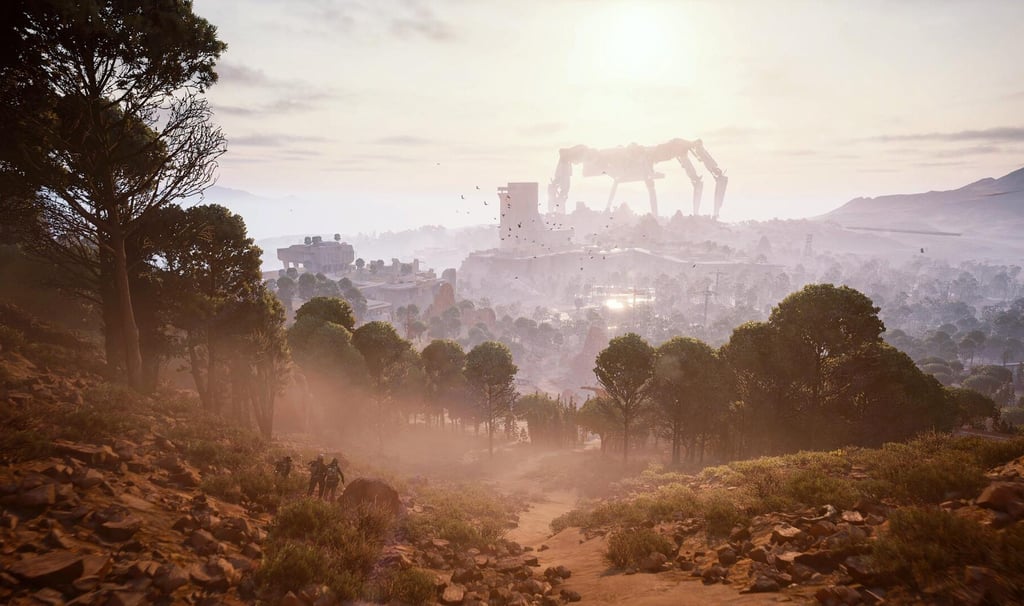 A iluminação dinâmica é um dos maiores destaques técnicos: raios de luz atravessando nuvens de poeira, reflexos metálicos nas carcaças das máquinas e efeitos de partículas realistas ajudam a criar uma atmosfera imersiva e futurista.