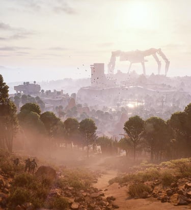 ARC Raiders impressiona pela sua ambientação cinematográfica e realista. O mundo do jogo é visualmente impactante — ruínas de cidades, desertos eletrônicos, e vales cobertos por névoa e destroços metálicos. O design dos inimigos robóticos é detalhado, e cada máquina parece ter uma presença ameaçadora própria.