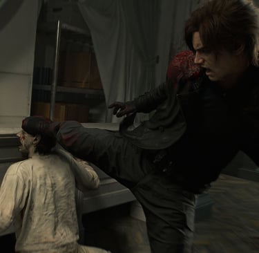 Já a campanha de Grace segue uma abordagem mais próxima do survival horror tradicional. Sua jornada começa em um sanatório dominado por zumbis, onde a escassez de recursos obriga o jogador a pensar cuidadosamente antes de cada confronto.